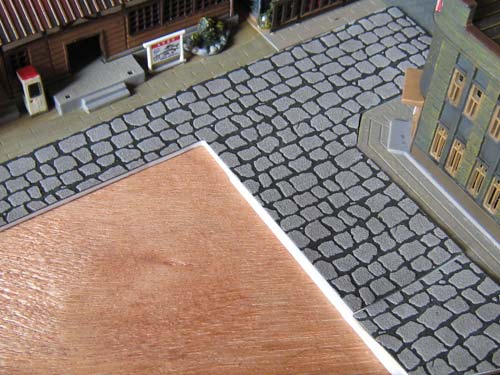 そして、レイアウトの道路全体に情景シートをカットし終わった状態です!